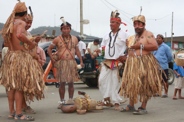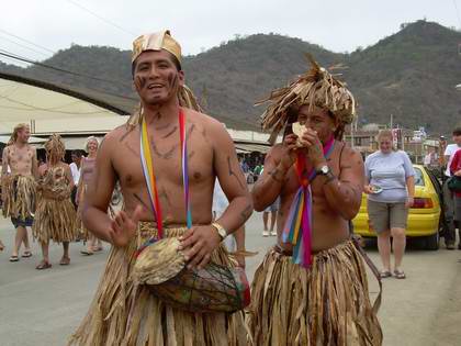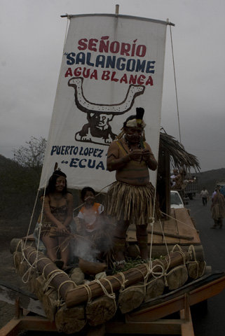 El festival de la balsa manteña se realiza el 12 de octubre de cada año; es un recorrido marítimo que hacían los habitantes de las culturas de esa zona antes de la llegada de los españoles. El recorrido comprendía las costas de Chile, México, Perú y posiblemente Hawai hasta llegar al imperio del Señorío de Salangome, realizando el intercambio comercial de sus productos como la concha Spondylus. La balsa manteña tuvo diferentes tipos de diseño y de uso según las aguas que navegaban, las embarcaciones fluviales eran de cierto calado. El inicio del Festival de la Balsa Manteña hace quince años comenzó con las comunas del señorío de Salangome (Agua Blanca), Sercapés (Puerto López), Cuzco (Machalilla), y Salango, el desfile comprende la celebración de más de quinientos años de resistencia indígena (del pueblo de Manta hacia la conquista de los españoles), el rescate de las culturas aborígenes; utilizando la balsa manteña, danza, teatro y rituales como curaciones de los shamanes cuya vestimenta es elaborada con la hoja y tallo del banano y el achote para las pinturas que usan en el cuerpos. |